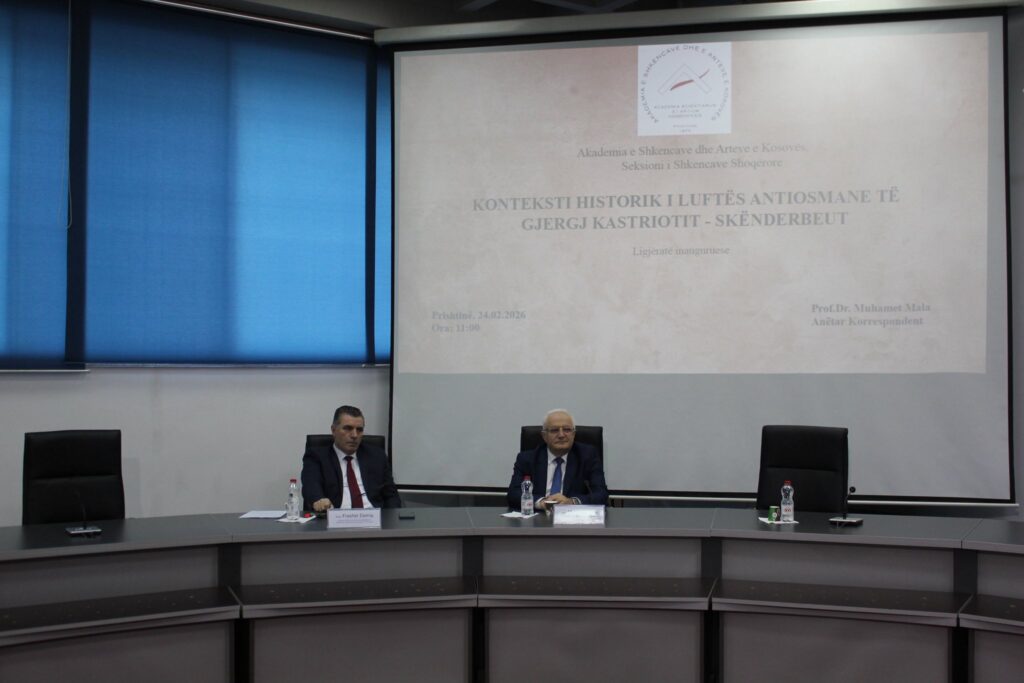 Sot me 24.2.2026, Seksioni i Shkencave Shoqërore i ASHAK ka organizuar ligjeratën inauguruese me titull: KONTEKSTI HISTORIK I LUFTËS ANTIOSMANE TË GJERGJ KASTRIOTIT-SKENDERBEUT të Prof. Dr. Muhamet Mala anëtar korrespondent i ASHAK-ut.