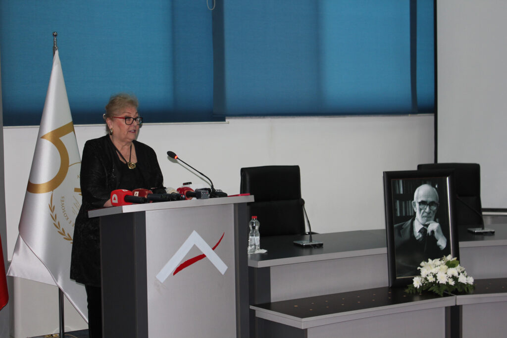 Komemoracionin e hapi kryetarja e ASHAK-ut, akademike Justina Shiroka-Pula, e cila fillimisht i ftoi të gjithë të pranishmit për një minutë heshtje. Kryetarja Shiroka-Pula, në fjalën hyrëse e vlerësoi lartë figurën e akademik Rexhep Qosjes dhe shprehu ngushëllime për familjen, kolegët dhe mbarë vendin.